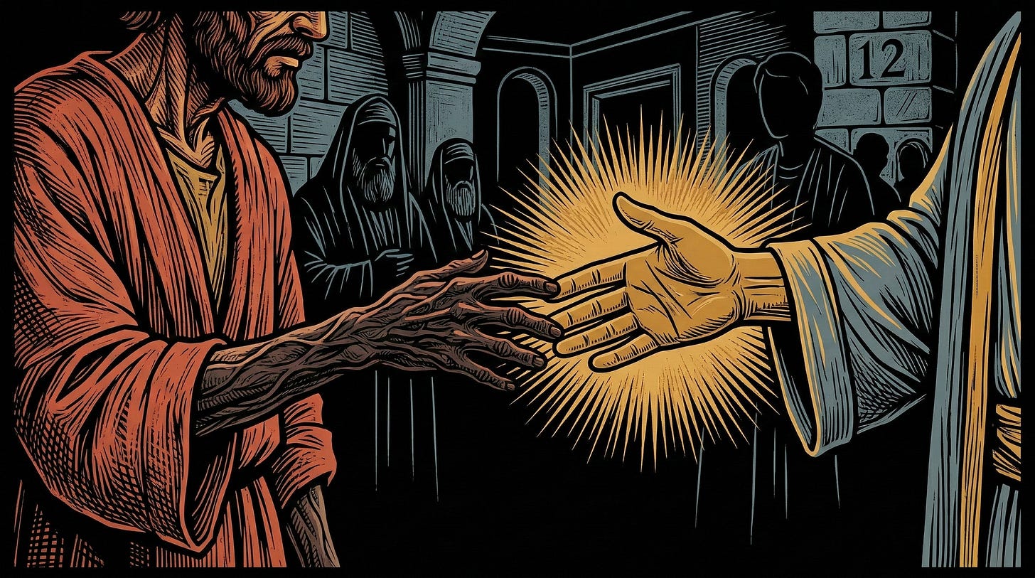 Lc ubica el episodio en otro Shabát, mientras que Mt lo enlaza con el mismo día en que Yeshúa pasó por los sembrados con sus discípulos y luego entró en la sinagoga. Allí había fariseos, quienes aprovecharon la presencia de un hombre con la mano paralizada para preguntarle si era lícito sanar en Shabát. En Mc y Lc, Yeshúa responde con una pregunta: “¿Es lícito en Shabát hacer bien o hacer mal, salvar una vida o matarla?”. Según la halajá rabínica (Yomá 8:6; t. Shab. 15.1; b. Shab. 128b), solo se permitía tratar a un enfermo en peligro de muerte; fuera de ello, la curación debía esperar. En este caso no había riesgo vital, por lo que los fariseos buscaban tenderle una trampa, no un debate genuino. Su intención era acusarlo, apelando a textos como Éx 31:14 (“quien profane el Shabát morirá”; cf. Sifre sobre Nm 15:33). Pero Yeshúa, al poner en evidencia la hipocresía de su planteamiento, frustra su propósito y revela que el Shabát está al servicio de la vida y del bien.