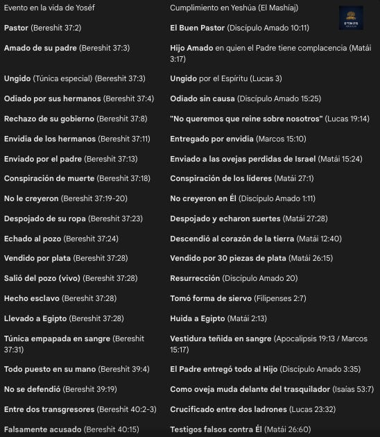 El destino de Ioséf prepara al lector para comprender que la redención puede comenzar con rechazo; que la exaltación del justo pasaría por la humillación; y que el propósito divino avanzaría incluso a través de la traición de los hermanos. La historia de Ioséf, en toda la profundidad que revela la propia trama de la profecía, conduce la mirada hacia Yeshúa como la consumación perfecta del hijo amado, el siervo sufriente y el salvador de Israel.
